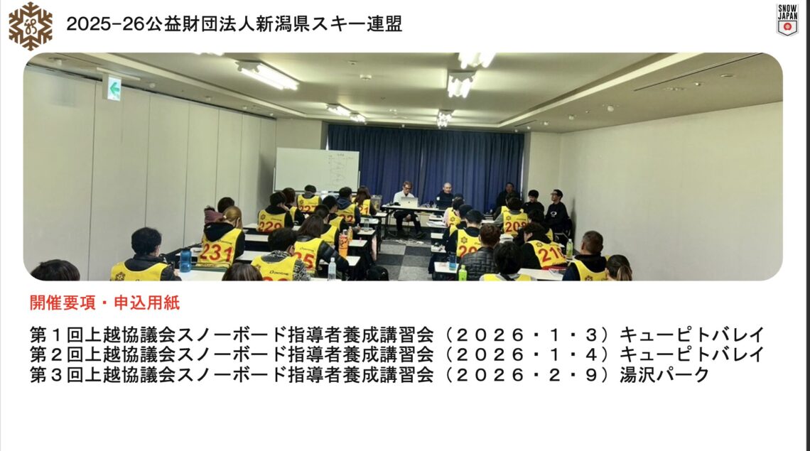 2024−25上越協議会スノーボード指導員養成講習会開催要項